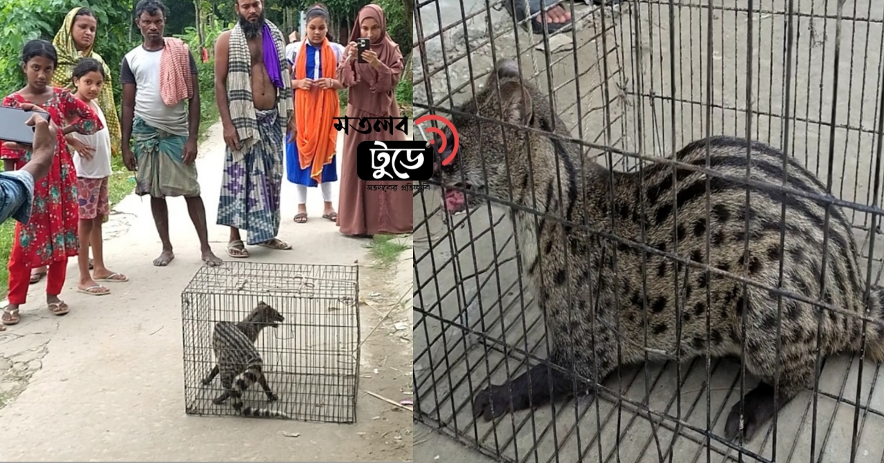 সোমবার রাতে ছেংগারচর পৌরসভার আধুরভিটি গ্রামে টিসিবির গোডাউনে হঠাৎ প্রানীটি ডুকে পড়ে। এসময় প্রাণিটিকে দেখে মেছো বাঘ মনে করে স্থানীয়রা আতংকিত হয়ে পড়ে। পরদিন মঙ্গলবার (৭ অক্টোবর) কৌশলে এটিকে ধরে খাঁচায় বন্দি করে রাখা হয়।