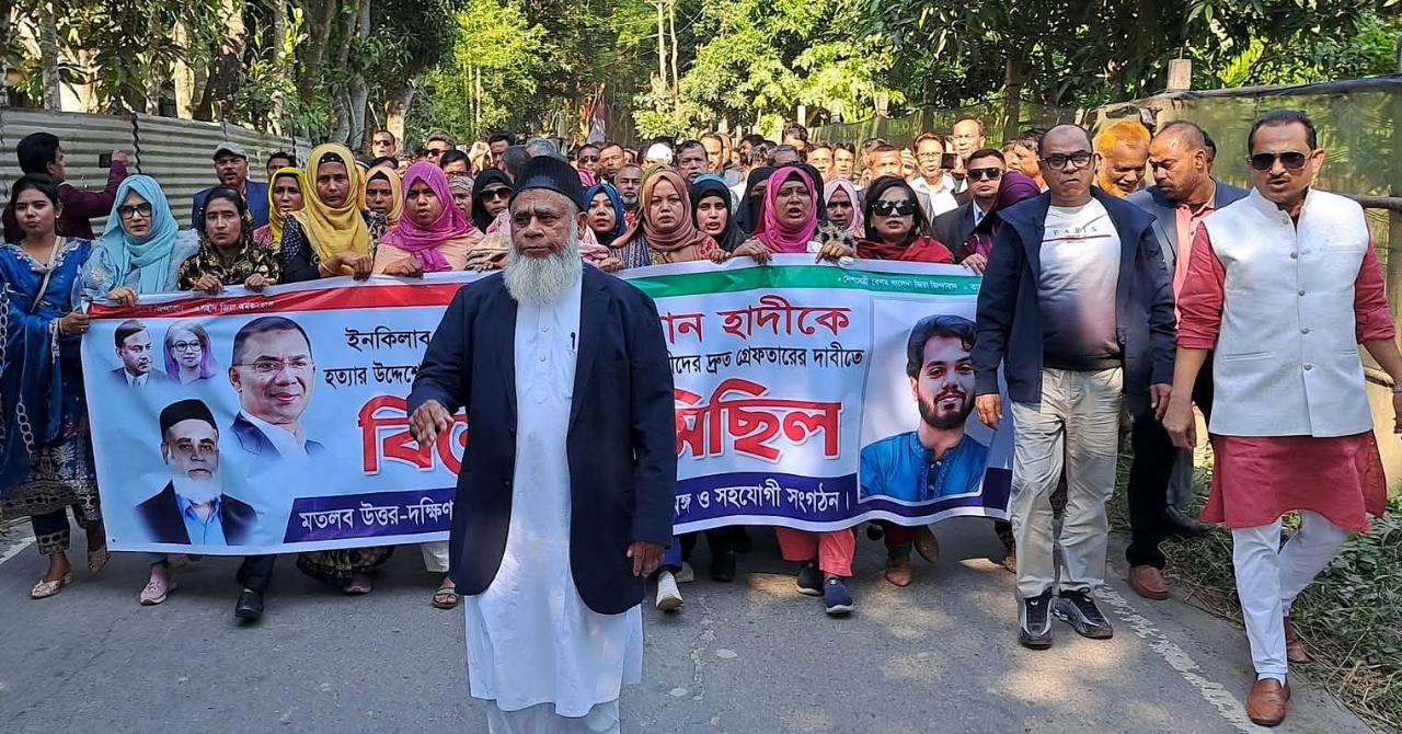 ইনকিলাব মঞ্চের মুখপাত্র ওসমান হাদির ওপর গুলি বর্ষণ করে হত্যাচেষ্টার প্রতিবাদে চাঁদপুরের মতলব উত্তরে প্রতিবাদ মিছিল ও বিক্ষোভ সমাবেশ অনুষ্ঠিত হয়েছে।