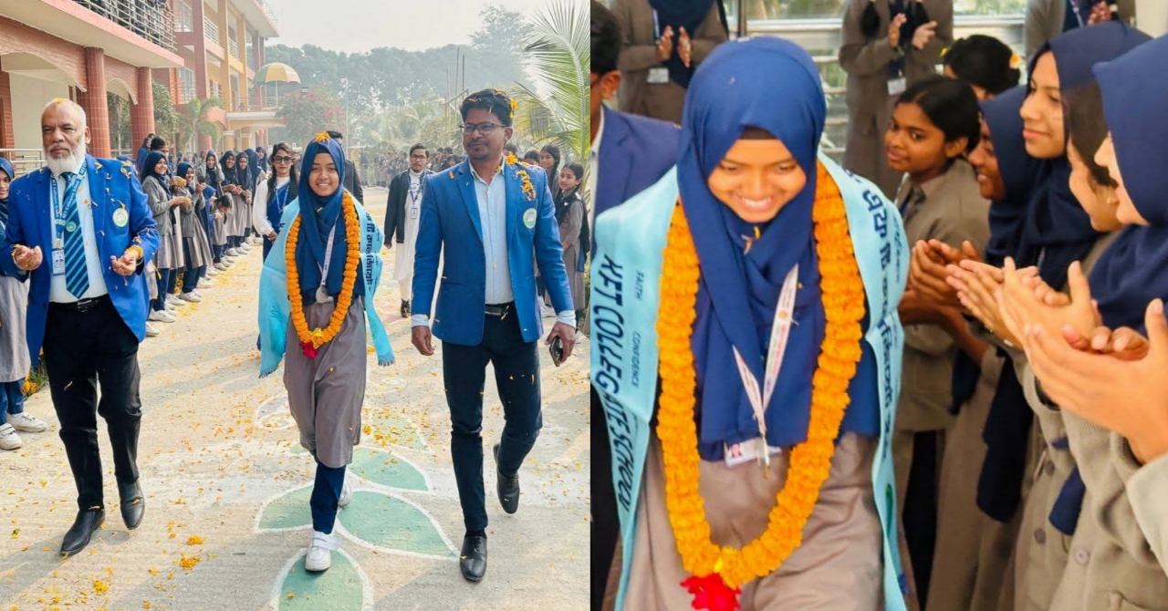 এরপর বেলুন ও আলোকসজ্জায় সাজানো মঞ্চে কেক কেটে সানিয়ার এই গৌরবময় সাফল্য উদযাপন করা হয়। একই সঙ্গে বিশেষ দোয়া মাহফিলের মাধ্যমে তার উজ্জ্বল, কল্যাণময় ও সম্ভাবনাময় ভবিষ্যৎ কামনা করা হয়।