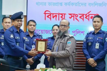চাঁদপুর জেলা পুলিশের উদ্যোগে বদলিজনিত বিদায় সংবর্ধনায় সম্মাননা পেলেন মতলব উত্তর থানার…